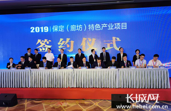 长城网廊坊讯(记者 李艮春)5月18日,在2019中国·廊坊国际经济贸易洽谈会上,保定市政府举办保定(廊坊)特色产业推介会暨项目签约仪式,共签约项目40项,总投资342.8亿元。