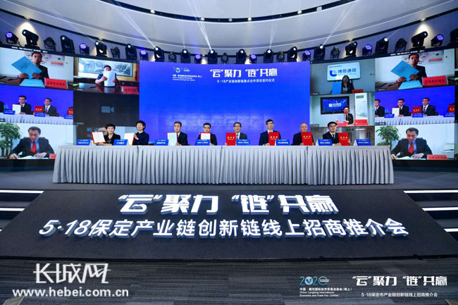 2020年“廊洽会”期间,保定通过“云”端签约,举办了“5.18保定市产业链创新链线上招商推介会”重点合作项目签约仪式和省重点项目集中签约活动。