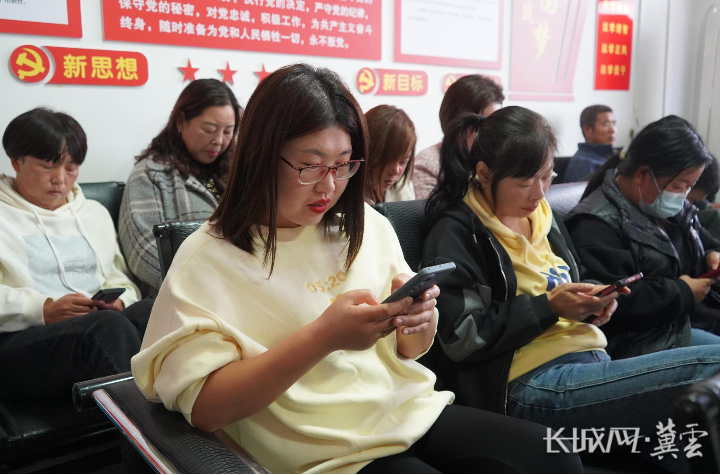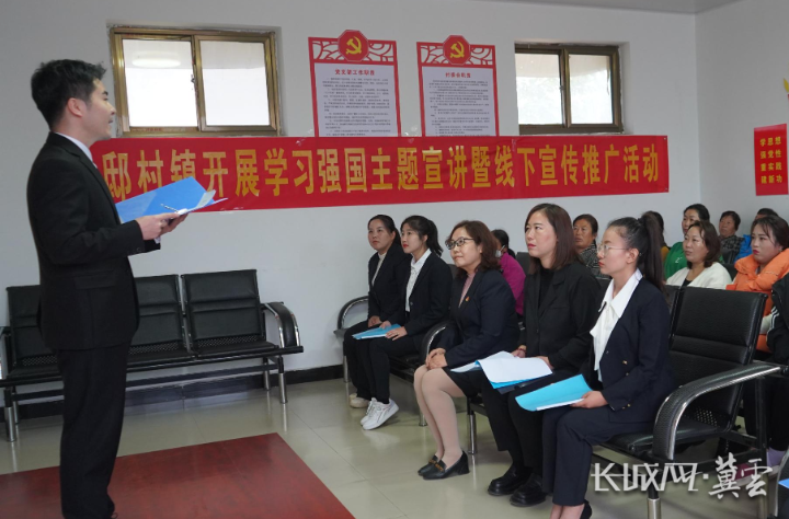 保定市曲阳县在邸村镇北东郭村开展“学习强国”主题宣讲暨线下宣传推广活动。图为宣讲现场。通讯员 马芊芊摄