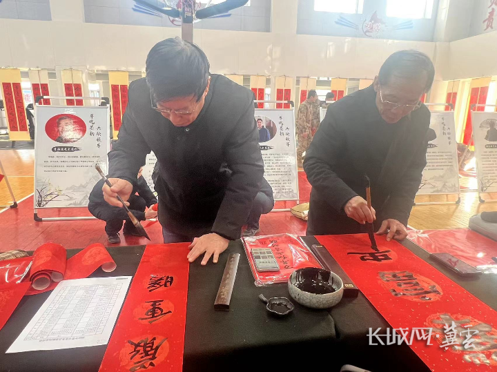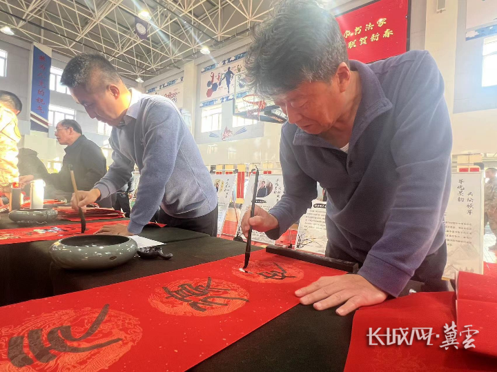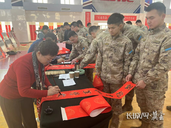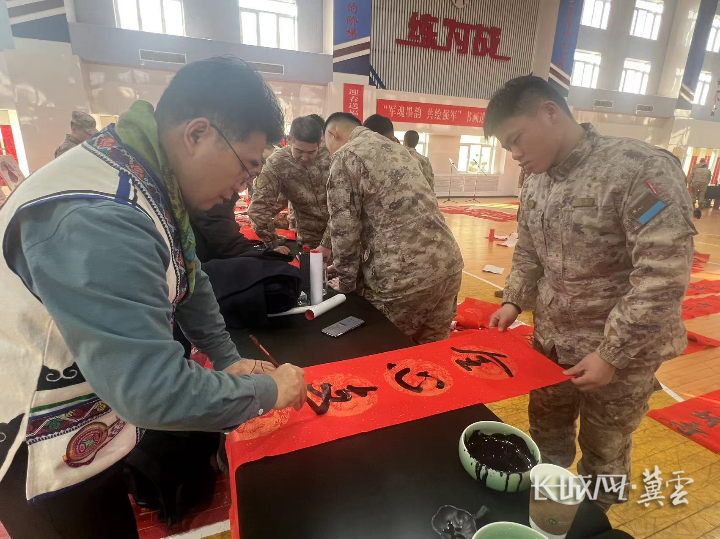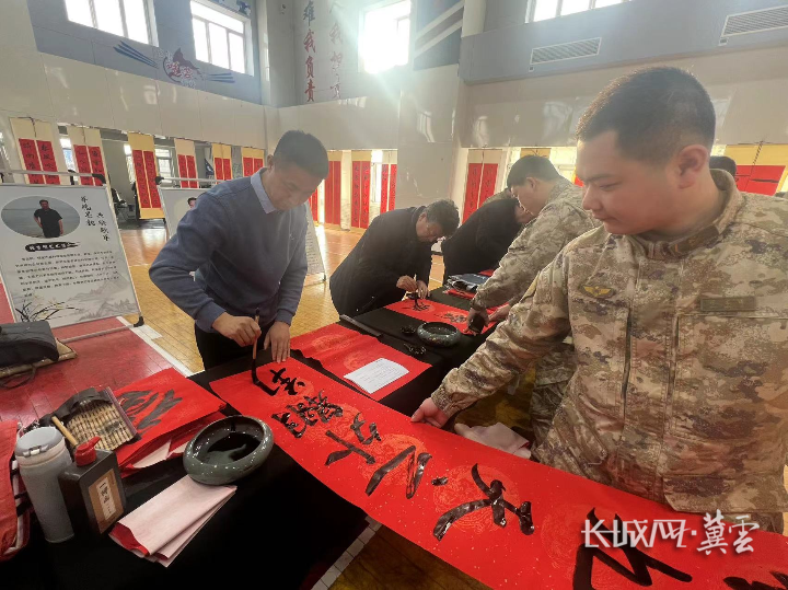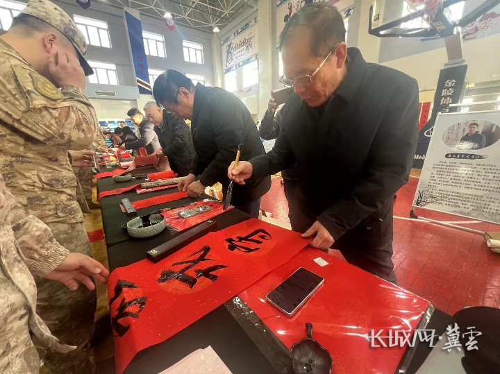 活动现场,书法家们挥毫泼墨、笔锋飞转,围绕部队优良传统及军民共建等内容,书写一副副饱含新春祝福的春联和“福”字,为即将到来的春节增添了浓厚的喜庆氛围,用文化力量丰富部队的精神文化生活。