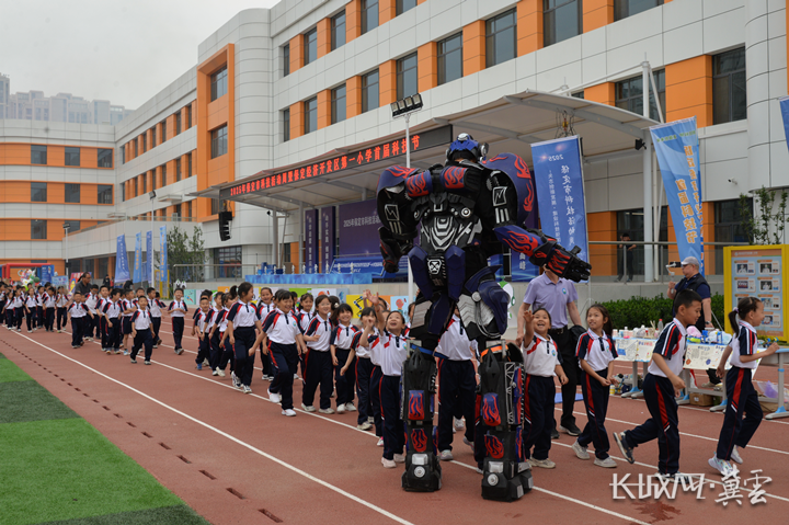 启动仪式现场,机器人团队灵活扭动机身,精准完成旋转、摆臂等舞蹈动作,引发阵阵喝彩。无人机蜂群博弈表演(空中拦截)、穿越机拉烟表演和固定翼拉条幅表演引得同学们阵阵惊叹。保定市科技局向保定经济开发区第一小学捐赠价值3万元的科普设备,保定市科协捐赠价值1万元的科普图书。