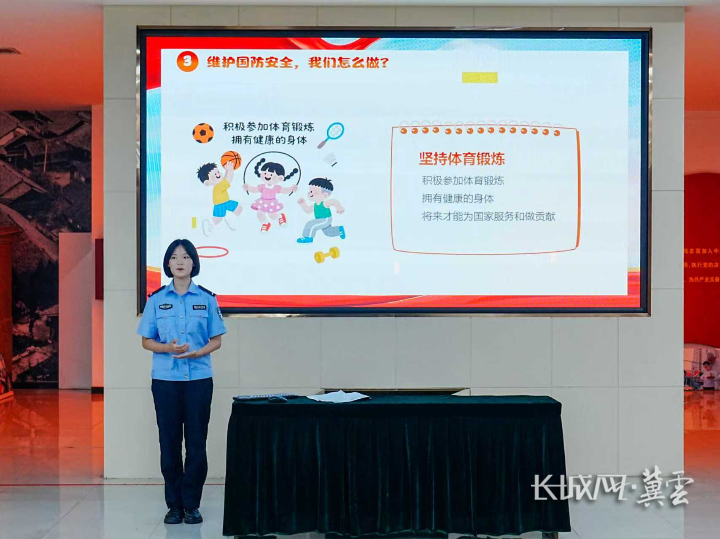 青衿知行团成员罗吟书进行国防教育宣讲。通讯员 罗上杰 摄
