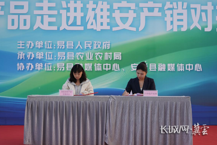 产销对接会上,易县农业农村局、独乐乡负责人重点推介当地特色农产品。白洋淀不夜城负责人与易县农特产品交易中心签订农产品购销框架协议。