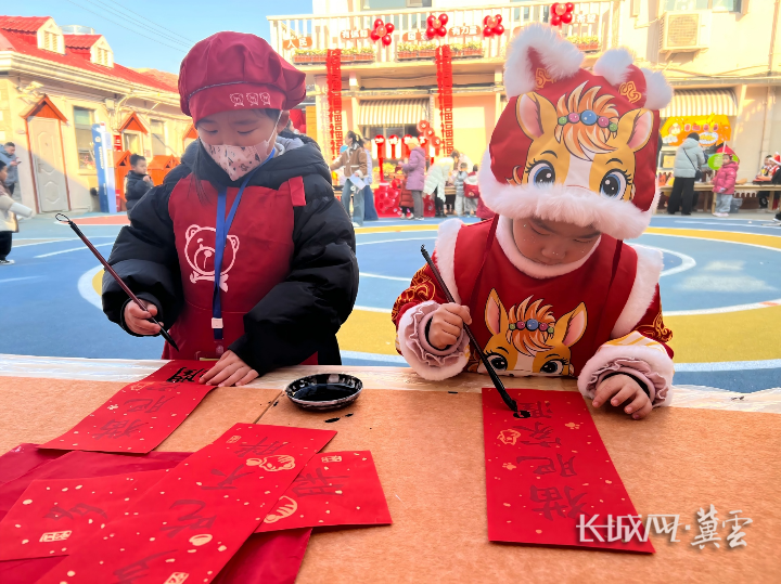 小朋友写对联。长城网·冀云客户端 牛琪 摄