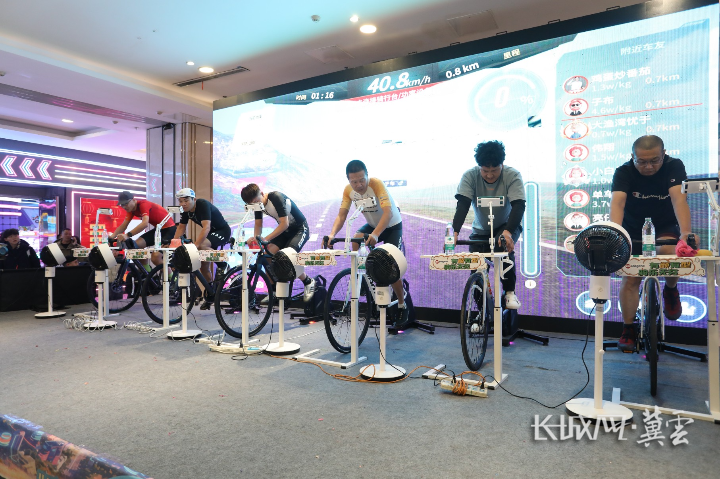 在“骑门嗨骑来”第五季室内骑行台挑战赛现场,来自全市的百余名参赛选手在智能骑行台上挥洒汗水,体验“速度与激情”。现场采用先进的电子计时系统,实时显示选手成绩,气氛紧张激烈。许多市民全家出动,父母孩子齐上阵,在运动中增进亲子感情。