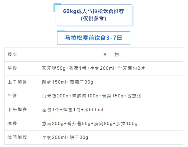 赛前3天起提升碳水摄入,增至8-10g/kg体重,选择白米饭、白面包、面条、土豆、香蕉等低纤维、高碳水食物,减少粗粮、豆类等高纤维食材摄入,避免肠胃胀气、腹泻,最大化提升肌糖原与肝糖原储备。