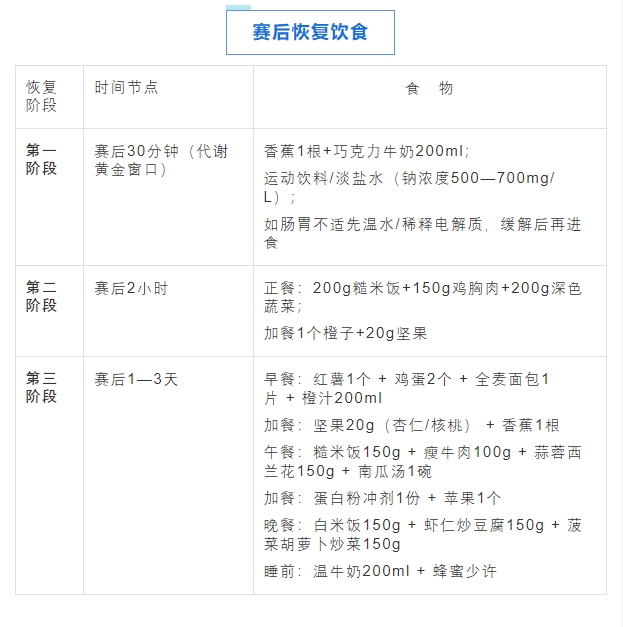 逐步恢复正常饮食,根据身体恢复情况,逐步回归正常训练节奏,切勿立即进行高强度、长距离训练,预防二次损伤。