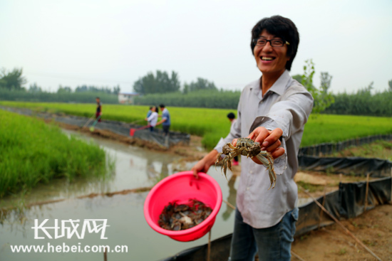 邵村花田水稻种植区推广稻蟹共生模式吸引游客。 周波臣 摄