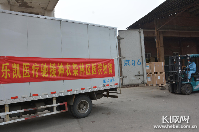 乐凯集团员工正在将捐往湖北的医疗物资装车。 朱海河 摄