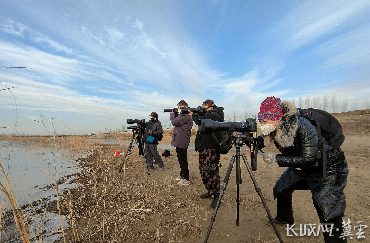 高阳孝义河畔,聚集了众多“摄鸟”爱好者。曹永祥 摄