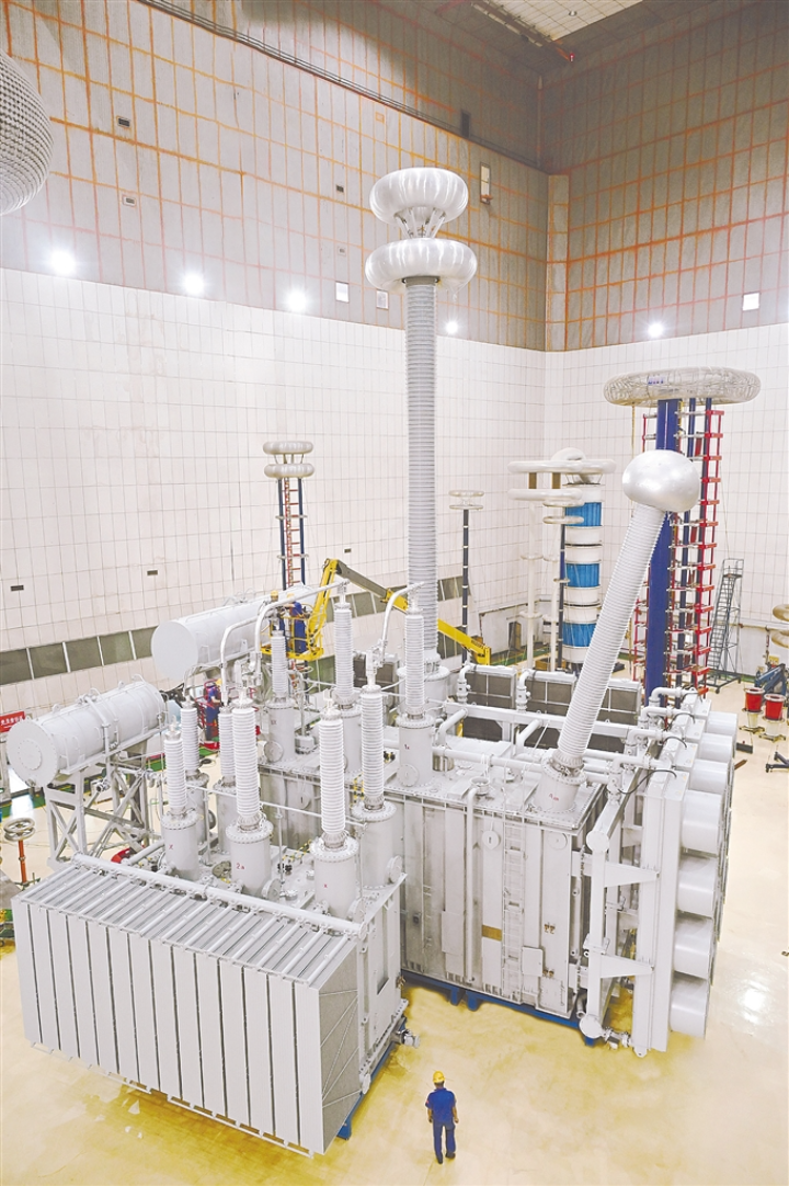 保变电气为世界海拔最高变电站研制的首台1000千伏现场组装式变压器。 寇颖伦 摄