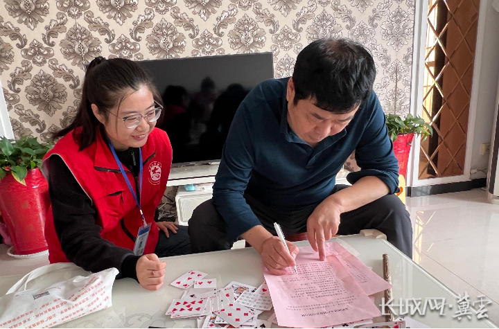 志愿者正在居民家中开展民意调查。通讯员 张昕雅 摄