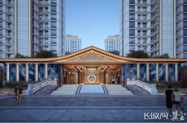 清华大学建筑设计研究院产业化设计分院院长李宝丰介绍,花溪北岸以“引领城市新奢人居理念,创造健康美居新生活”为设计目标,采用“中国礼序”规划理念,构建“一重入园、二重穿庭、三重登堂”的礼制之美。建筑立面遵循经典白金搭配法则,辅以“金镶玉”理念,通过强烈的建筑线条,结合顶部官帽式挑檐,塑造尊贵典雅、端庄大方的建筑形象。