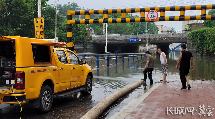 图为涿州市冠云桥积水处抽水现场。通讯员 刘奕 摄