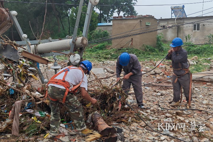 抢修电力设施。长城网·冀云客户端记者 王日成 摄