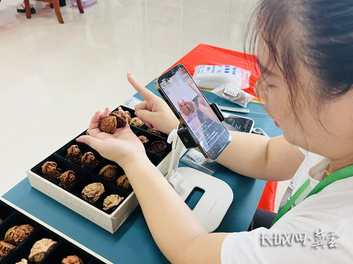 主播正在介绍涞水麻核桃。通讯员 岳雷雨 摄