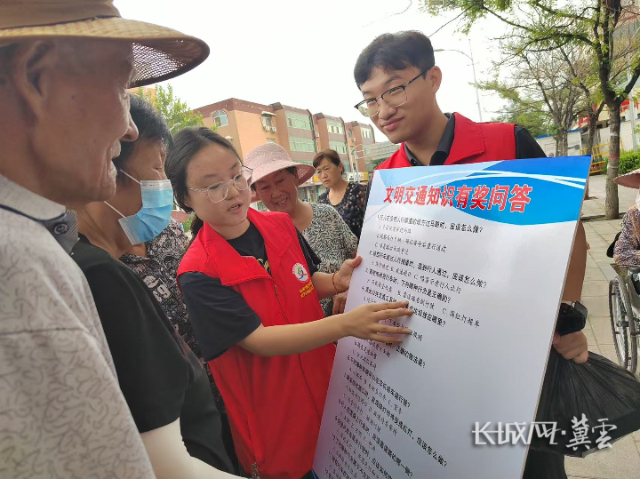 此外,志愿者还分组开展沿街宣讲走访活动。在县城主要路口、沿街商铺,志愿者向店主和过往行人发放宣传材料,提醒大家规范停放车辆,避免占用消防通道和人行横道;用通俗易懂的语言讲解老年人过马路、家长接送孩子出行的注意事项;针对部分居民提出的“如何正确佩戴安全头盔”“儿童安全座椅使用方法”等问题,逐一进行示范解答。