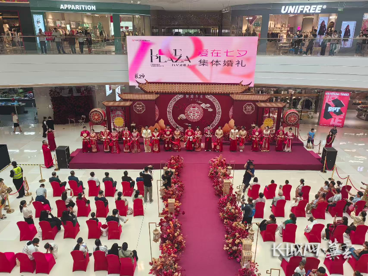 长城网·冀云客户端讯(通讯员 刘思源)8月29日,一场以“锁定心动,爱在七夕”为主题的中式集体婚礼在保定市莲池区爱情广场一楼中庭举行。