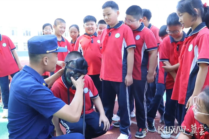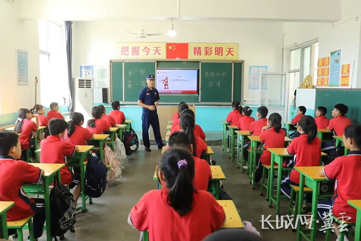 “吸,使劲儿吸……万一着火的话,一定要第一时间向大人求助,也可以看现场有没有这种正压式空气呼吸器。”易县消防救援大队工作人员向学生们介绍发生火灾后的应对技巧。高陌镇中心学校大北城小学把“开学第一课”聚焦消防安全,由消防工作人员从火灾的成因、初期火灾的扑救方法,到灭火器的正确使用步骤,再到火场逃生的注意事项,用通俗易懂的语言和真实案例,让孩子们了解了火灾的危害及应对技巧。