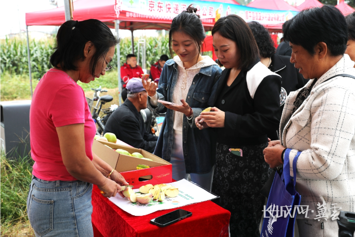 现场群众品尝顺平苹果。通讯员 赵端 摄