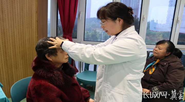 保定市妇幼保健院医生现场为老人按摩。通讯员 杜娟 摄