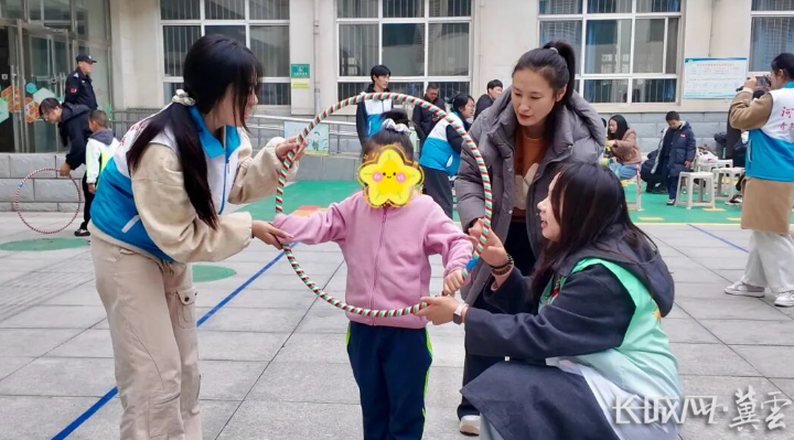 “同心齐步走”“摇摇圈跳跳跳”等趣味项目轮番上演,家长、孩子与志愿者默契配合,加油声、呐喊声此起彼伏。