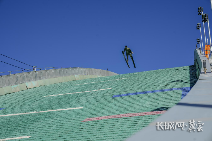 运动员在涞源国家跳台滑雪训练科研基地训练。通讯员 鲁文杰 摄
