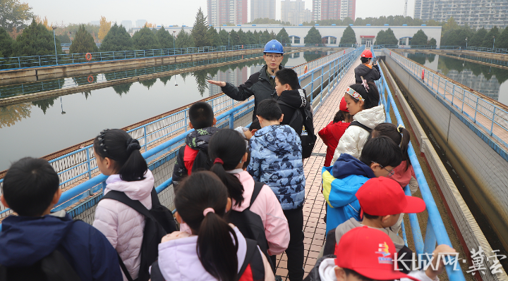 “厂区内设备正在运行,大家要与机器保持安全距离,严禁随意触摸,必须跟紧队伍,不得随意走动!”活动开始前,工作人员为他们讲解了参观规范及注意事项,并播放了水厂宣传片。