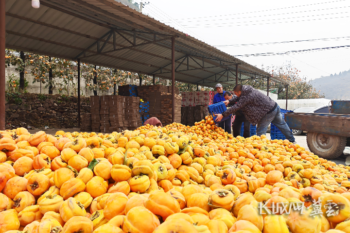 农户在当地柿子交易市场。通讯员 赵端 摄