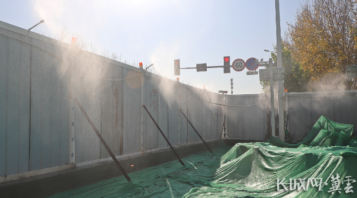 项目建设方利用喷淋系统抑尘、降尘。通讯员 安柔 摄