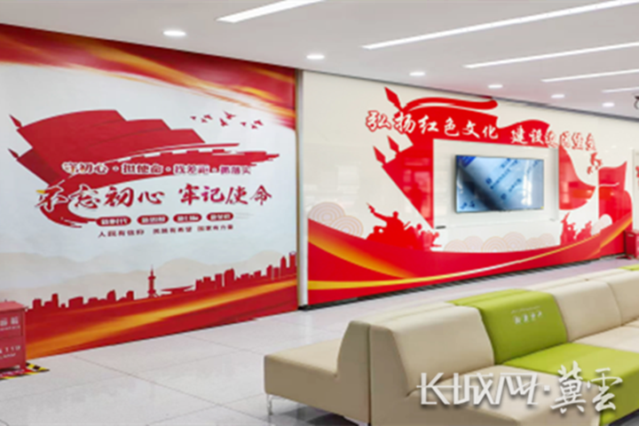 在邮储银行阜平县平阳镇支行的大厅,一面以“弘扬红色文化建设边区堡垒”为魂的红色文化墙,是老区精神与金融使命的具象缩影;活动室里,一面文化墙上展示着中国人民银行成立和第一套人民币诞生的过程,把那段“在战火中建金融”的岁月铺展在眼前。