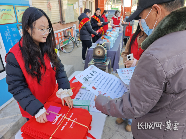 工作人员发放移风易俗宣传页。通讯员 赵子墨 摄