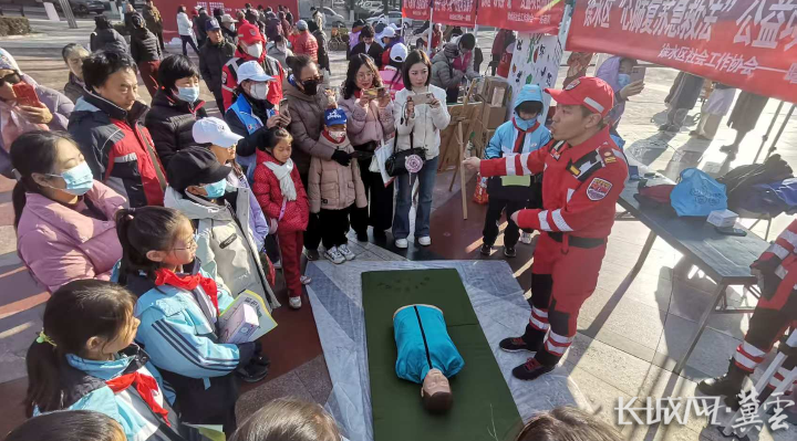 图为应急救护队现场为孩子演示心肺复苏技能。通讯员 徐常建 摄
