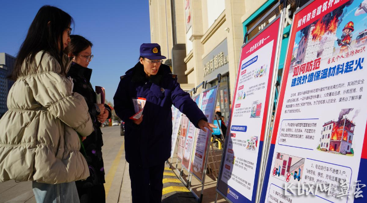 工作人员为群众普及消防安全知识。曲阳县委宣传部 供图