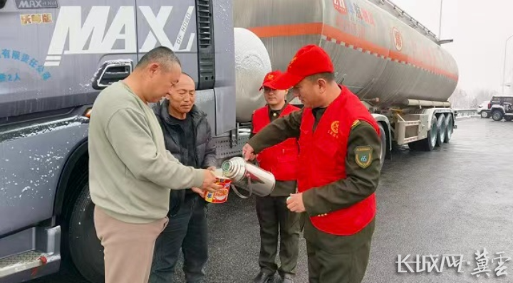 徐水收费站工作人员为司机送上热水泡面。通讯员 付东明 摄