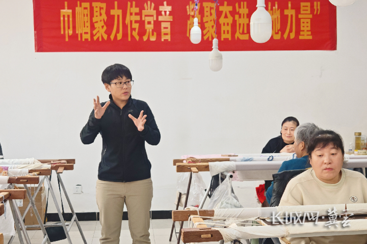巾帼宣讲员翟梦楠在京绣研究院为绣娘们进行宣讲。通讯员 梁洁 摄