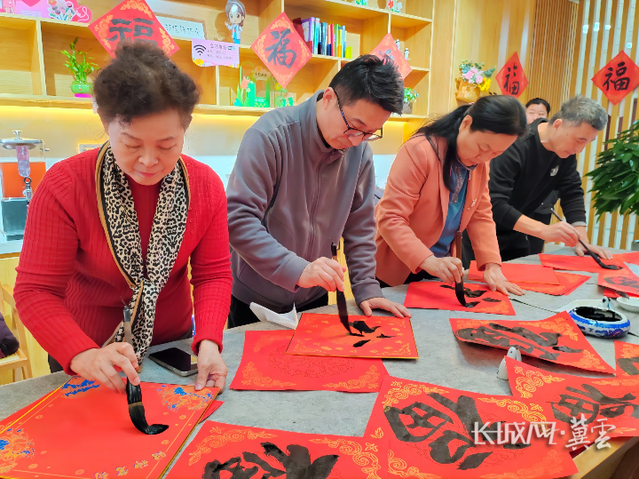 现场还专设书法展示与赠福专区。展区内,保定兰亭学子手书的百副春联整齐陈列,将免费赠予后续参与无偿献血的爱心人士;小书家们精心创作的福字,也作为专属赠礼,让无偿献血的善举增添文化温度与节日氛围。