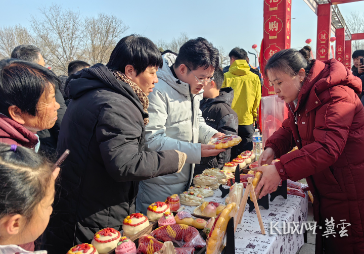 春联、羊肉、驴肉、干果、生鲜……在唐尧公园的展区内,各类商品琳琅满目,人们挑选福字、置办糖果,处处洋溢着浓浓的节前喜庆氛围。除了热闹的活动现场,年货节还同步在本地电商平台开设“云上年货节”专区,让大家既能亲临现场感受热闹年味,也能足不出户轻松“云采购”。