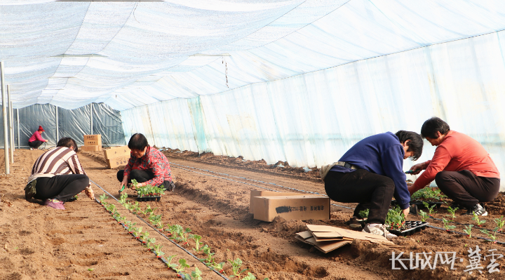 中任村瓜农正在暖棚里有条不紊地移栽西瓜苗。通讯员 梁若曦 摄
