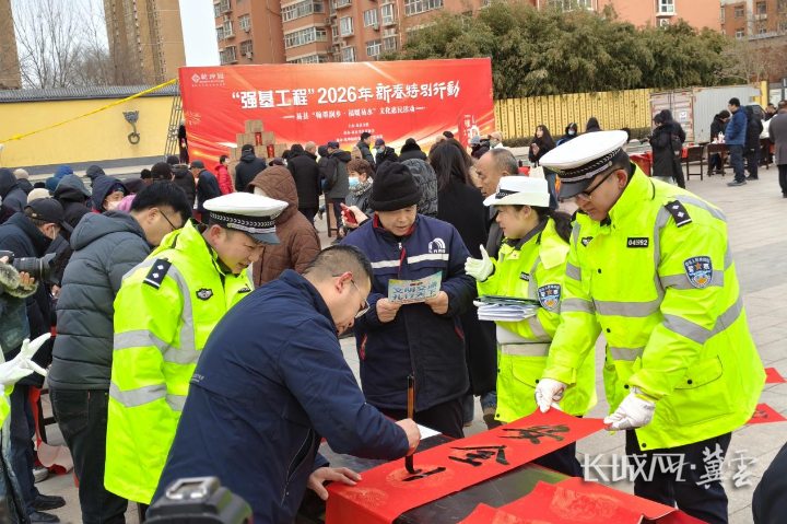 活动当日,“易心易意帮帮团”新时代文明实践活动、公安交警大队“警民迎新年·春联话平安”活动同步开展,志愿者与民警向群众赠送春联和福字,共同创作文明平安出行主题作品,让文明交通安全知识随着笔墨深入人心。
