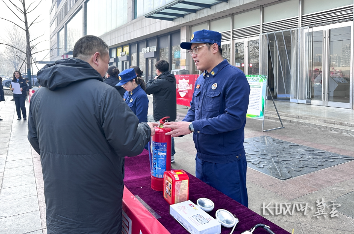 消防救援人员为群众讲解消防器材的使用方法。通讯员 白凤 摄