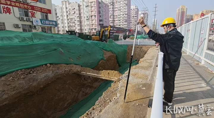 图为保定供水工作人员正在施工现场进行管线测绘。通讯员 孙磊 摄