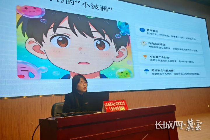 讲座开始前,对外联络办公室主任冀虎介绍了北京儿童医院保定医院发展概况及“一院两区”协同运行情况。随后,医院精神心理医师王丽华围绕青春期生理变化、情绪波动特点、人际交往困扰、自我认同与保护等常见问题,细致讲解了青春期情绪管理、焦虑与压力缓解、校园人际交往技巧、自我价值认同等内容。