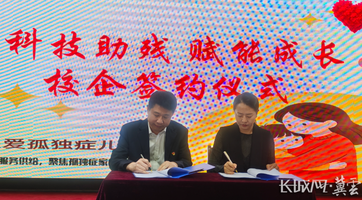 爱心企业与保定市融星实验学校签约,正式达成科技助残校企合作关系。实习生 裴雨菲 摄