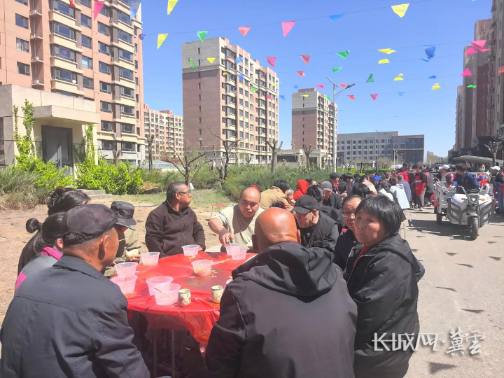 这场流水席是村民“自发性、全参与”的盛举,从筹款、采购到搭灶、掌勺,全村老小齐上阵。200多张圆桌在小区广场上排列,数千道家常菜冒着热气端上桌。席间,大家忆苦思甜,畅谈7年来的变迁:从昔日的土坯房到如今的电梯楼,从看病难上学远到现在的社区医疗和学区配套,每一个变化都离不开党和政府的好政策。