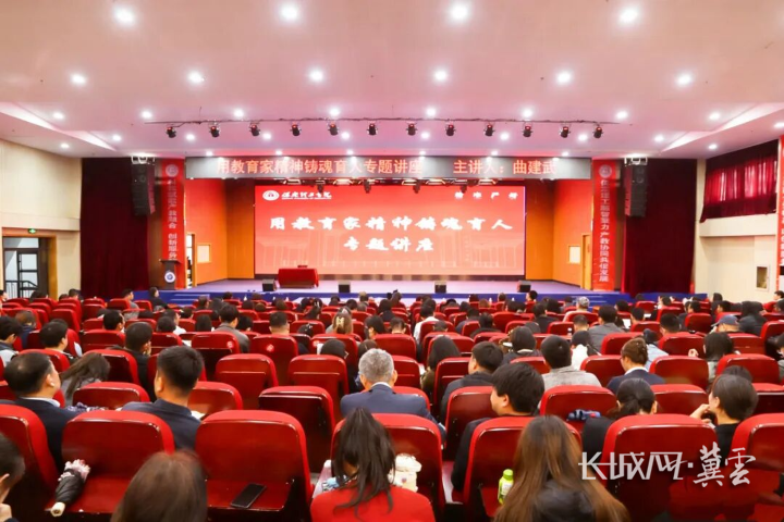 讲座中,曲建武以深厚的教育情怀、鲜活的育人案例,深刻阐释新时代教育家精神的丰富内涵。他围绕心有大我、至诚报国的理想信念,言为士则、行为世范的道德情操,启智润心、因材施教的育人智慧等核心要义,结合自身走访各地、关爱帮扶学生的真实故事,生动讲述了教育工作者的使命与担当。