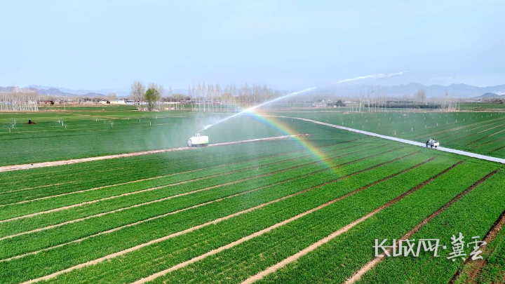 易县高陌镇北沈村高标准基本麦田里,农耕灌溉机器人在喷洒作业。通讯员 郭恩桥 摄