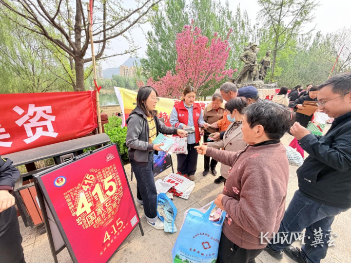 志愿者与工作人员向群众发放宣传资料。通讯员 田丹 摄